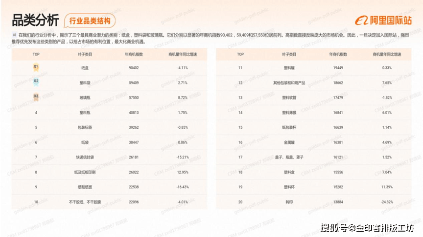 正在我们的行业阐发中,了三个最具贸易潜力的类别!纸盒,塑料袋和破璃瓶,它们别离以显著的年商机指数90。402,59,409和57。50位居前列,高指数间接反映复杂的市场机遇,因而,一旦决定插手国际坐,强烈